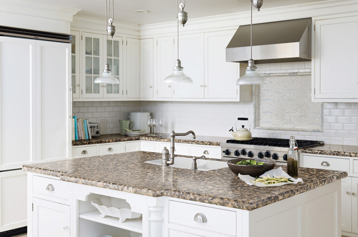 Kitchens With Laminate Countertops - Laminate Countertops vs Stone Countertops | The Kitchen ... - We offer formica laminate, solid surface, granite or quartz countertops to laminate countertops boast a stylish and exclusive look at an affordable price.. Standard kitchen counters are 24 inches deep and 36 inches from the floor. They make your kitchen workplace pretty looking and worth do you also want to know how to install laminate countertops? And, unlike our previous countertops, the laminate wraps under on the bottom, making the countertops look more like real stone and less like laminate. Worn or outdated laminate kitchen countertops don't have to be replaced to look new. Laminate countertops beautify your kitchen and give it a new look through the exciting and attractive colors and texture.
